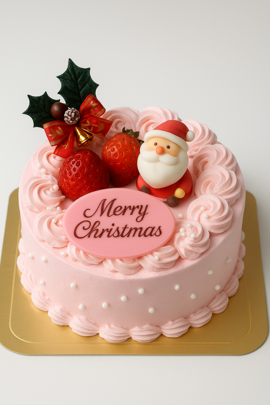 可愛いピンク色の生デコレーションにパールシュガーのトッピングです。